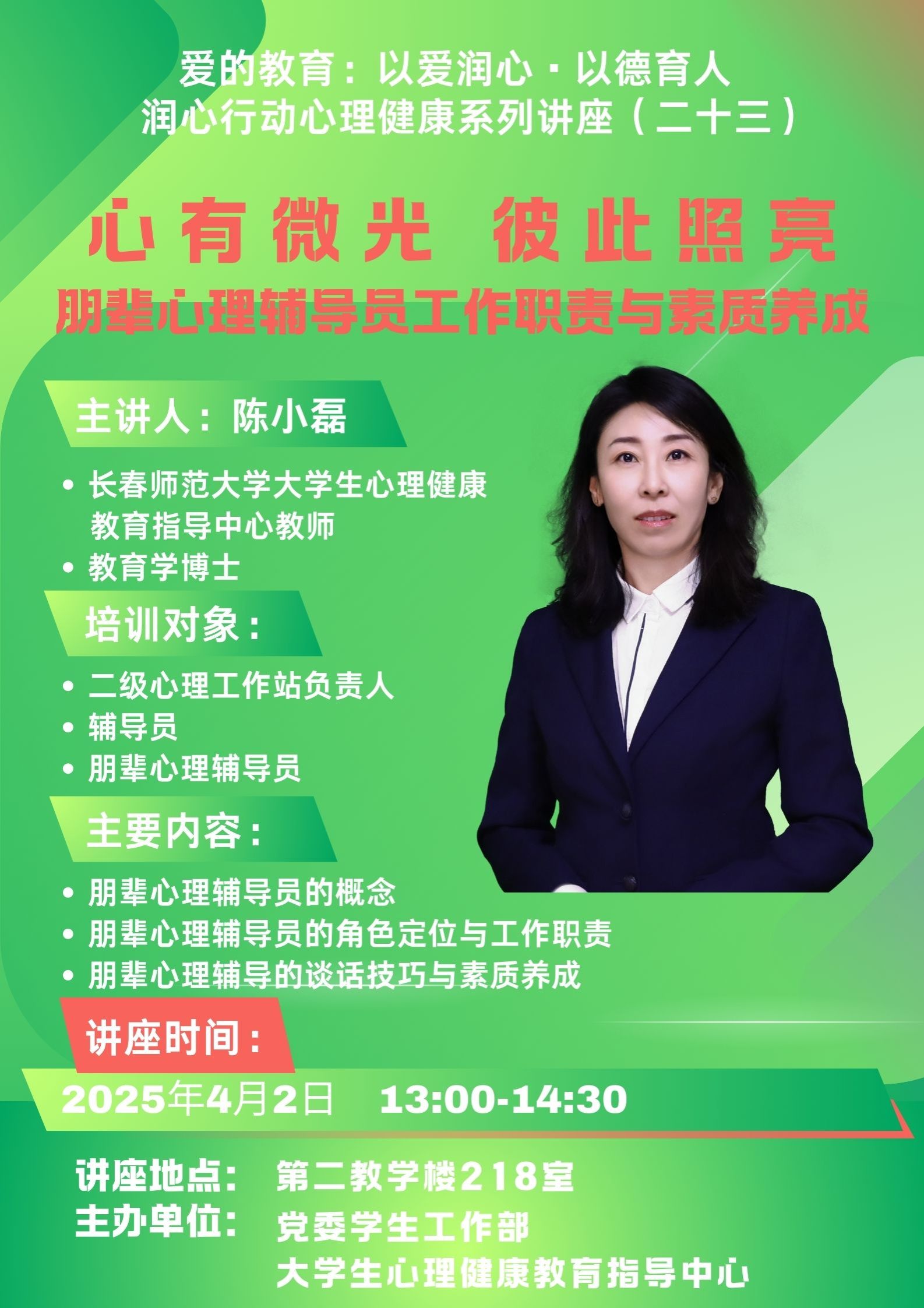 主题:心有微光 彼此照亮 朋辈心理辅导员工作职责与素质养成
