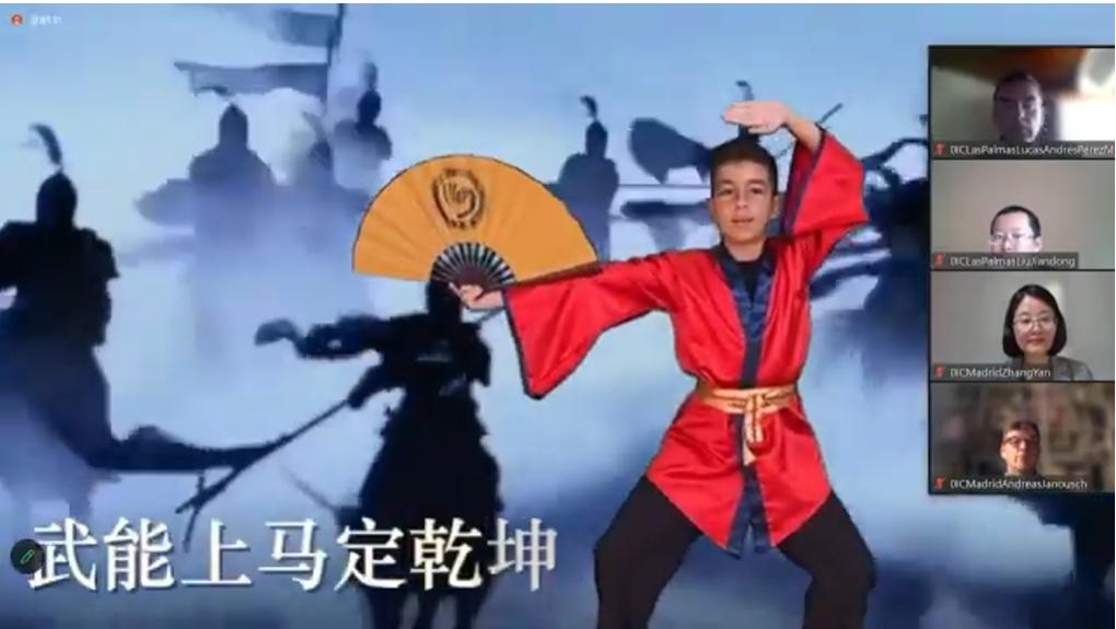 西班牙时间5月28日上午,由中国驻西班牙大使馆主办,莱昂大学孔子学院承办的第三届“汉语桥”世界小学生中文秀西班牙赛区决赛落下帷幕。经过激烈角逐,我校拉斯帕尔马斯大学孔子学院英西教学点学生加布里埃尔脱颖而出,荣获本次比赛冠军,将代表西班牙赛区赴中国参加“汉语桥”世界小学生中文秀全球赛,另一名选手阿西尔获得第四名。