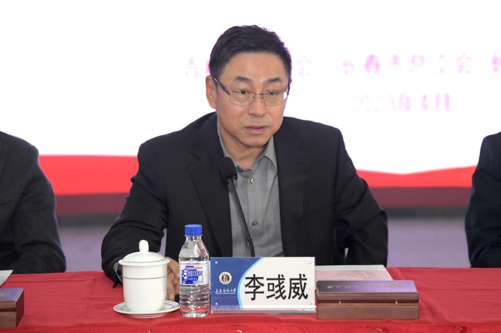 李彧威对省市总工会领导一行的到来表示热烈的欢迎,对长期以来关心支持我校事业发展和工会工作的省总工会、长春市总工会表示衷心的感谢,对在此次全国比赛中不畏强手、顽强拼搏、勇夺桂冠的教练员、运动员们表示诚挚的祝贺。李彧威表示,本次以我校教职工为主的女子气排球创造了我省在全国行业系统比赛中的历史最好成绩,为我省赢得了荣誉,在赛场上,充分展示了吉林教科文卫体系统职工良好的精神风貌。李彧威希望省、市两级工会多支持、多关注学校工会工作,更好地促进学校工会工作实现新进展、取得新成绩。