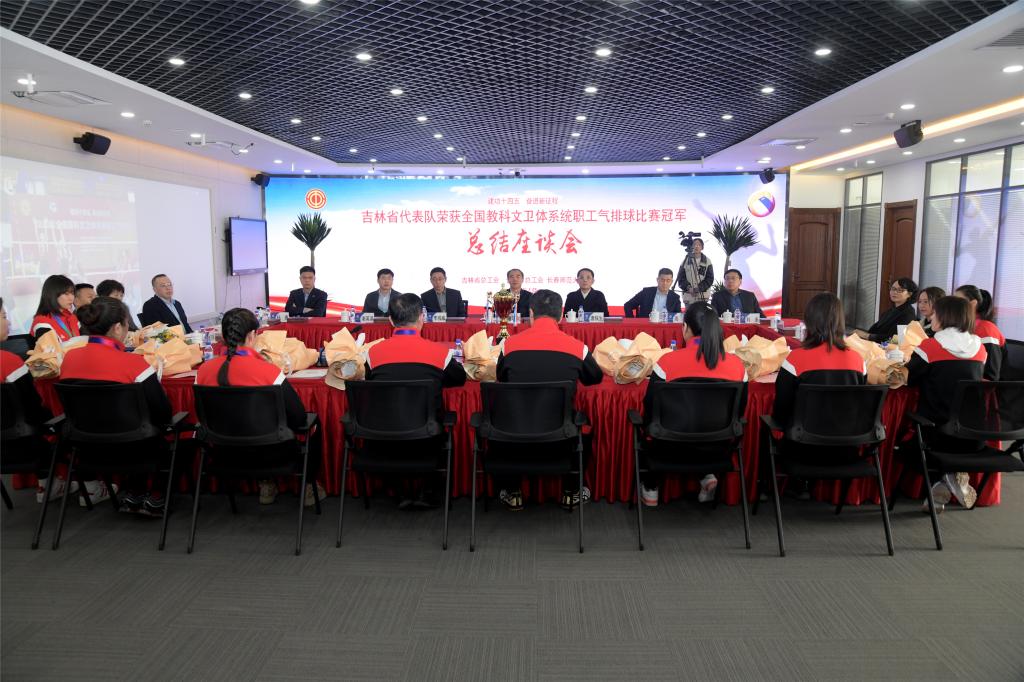 座谈会上,气排球队全体运动员在交流发言中一致表示,感谢省、市总工会的支持与信任,感谢学校领导及工会的高度重视,是这份信任、支持、重视让全体队员在全国教科文卫体职工气排球比赛的舞台上有了勇夺桂冠的底气。全体队员定会继续努力,为吉林省气排球事业、为吉林省职工体育发展贡献力量。