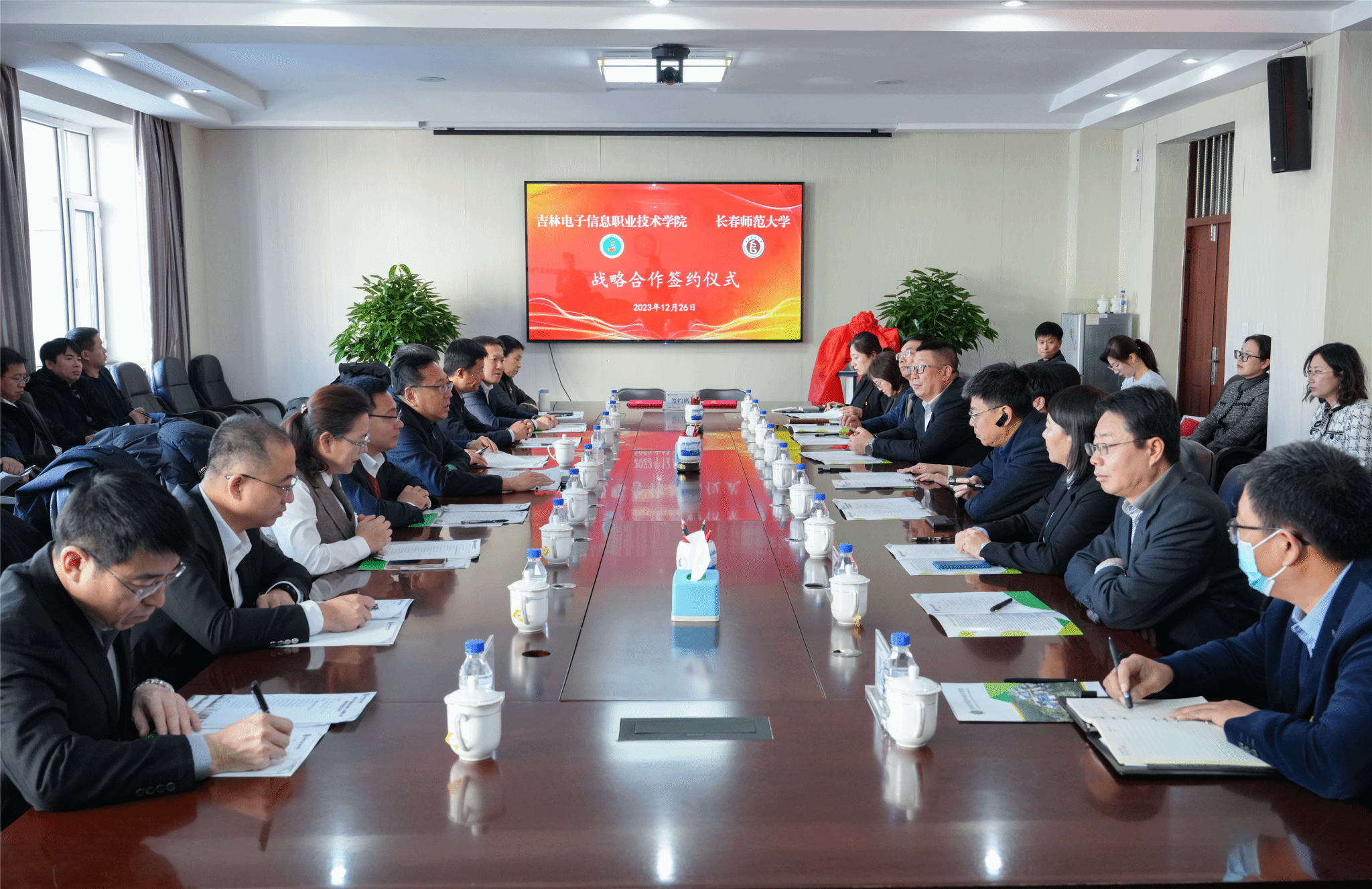 12月26日上午,我校与吉林电子信息职业技术学院战略合作签约仪式在吉林电子信息职业技术学院举行。我校党委书记刘多,党委副书记、校长王延明,副校长胡德超、刘鹏飞、陈爱梅,吉林电子信息职业技术学院党委书记何晓杰,党委副书记、校长杨勇,党委副书记石洪发,纪委书记高楠,副校长于钧、刘占文、张晓娟出席签约仪式。