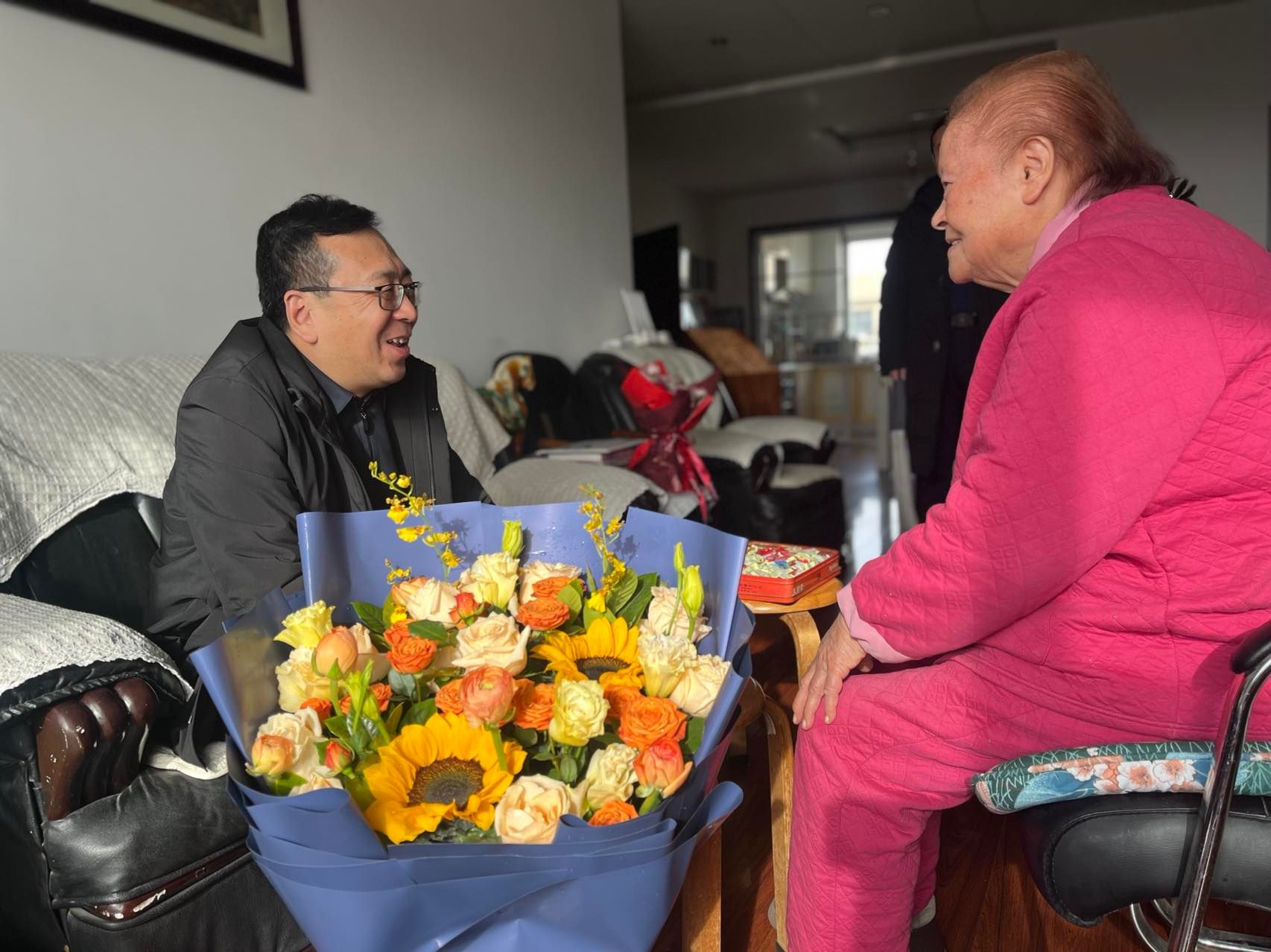 在娄警予家中,刘多热心询问老领导的生活和身体状况,并介绍了学校近年来在人才培养、学科建设等方面取得的成绩,征求老领导对学校今后发展的意见和建议。刘多代表学校衷心感谢老领导为学校发展作出的宝贵贡献,殷切叮嘱老校长一定要保重身体,希望她一如既往地关心支持学校事业发展,多为学校建设发展提出宝贵意见。
